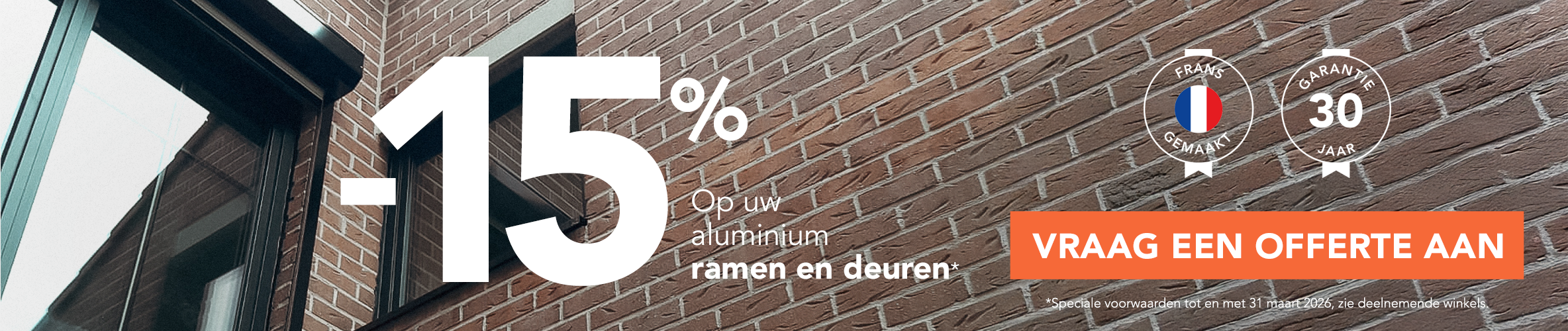 -15% Op uw aluminium ramen en deuren van 1 tot en met 31 maart *.